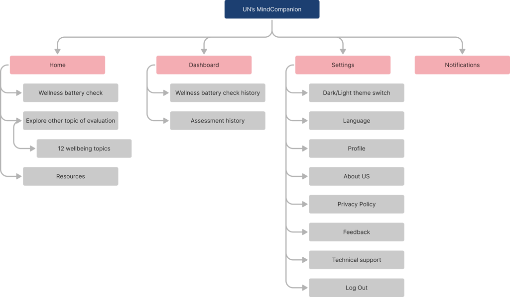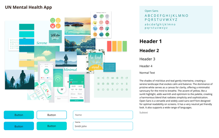 The design ensures a user-friendly, accessible, and visually engaging experience while maintaining alignment with the UN’s mental health support objectives.
