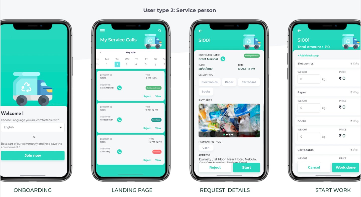 Service Person - Scrap collection agents responsible for picking up and managing recyclable waste from users.